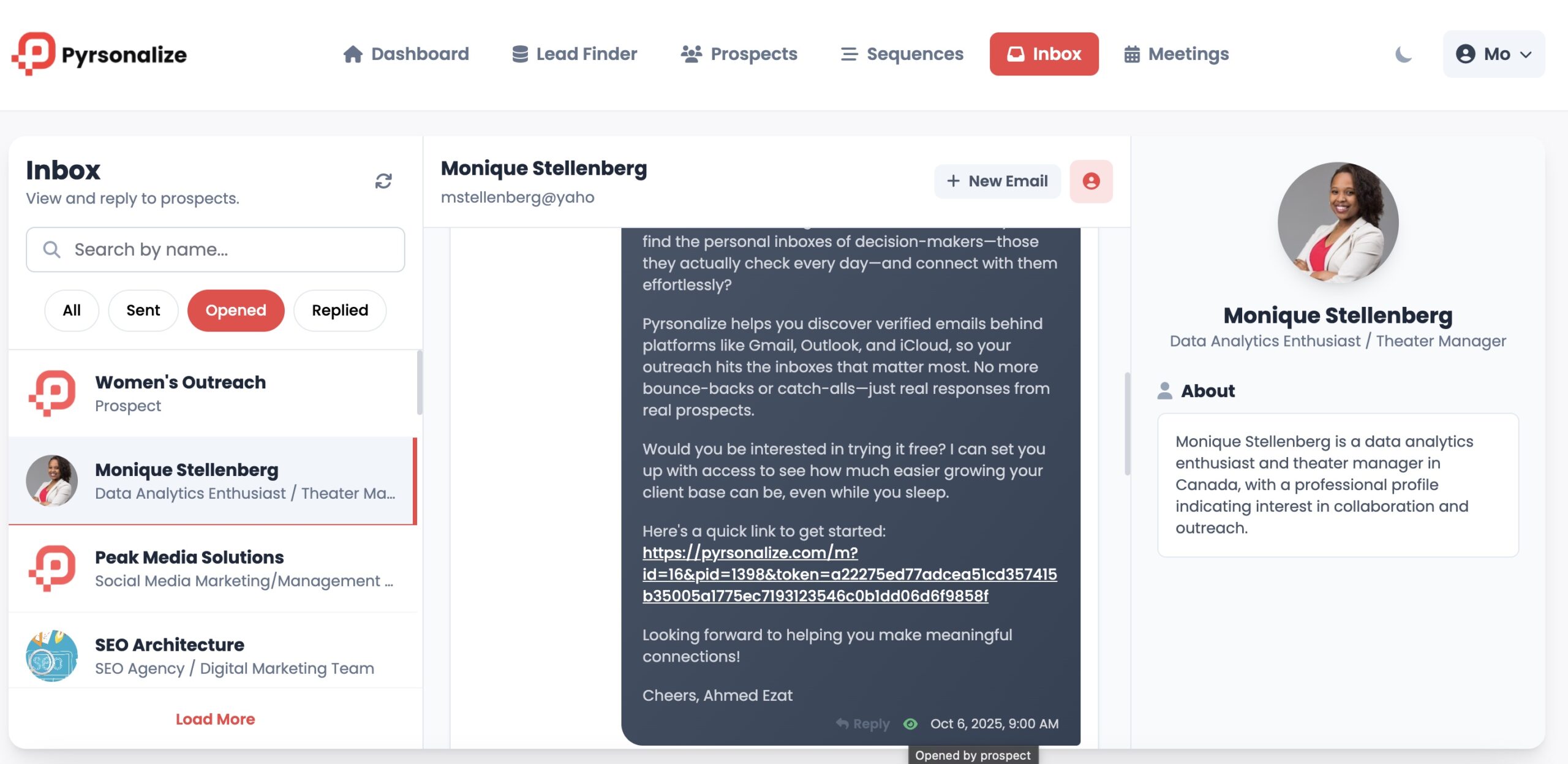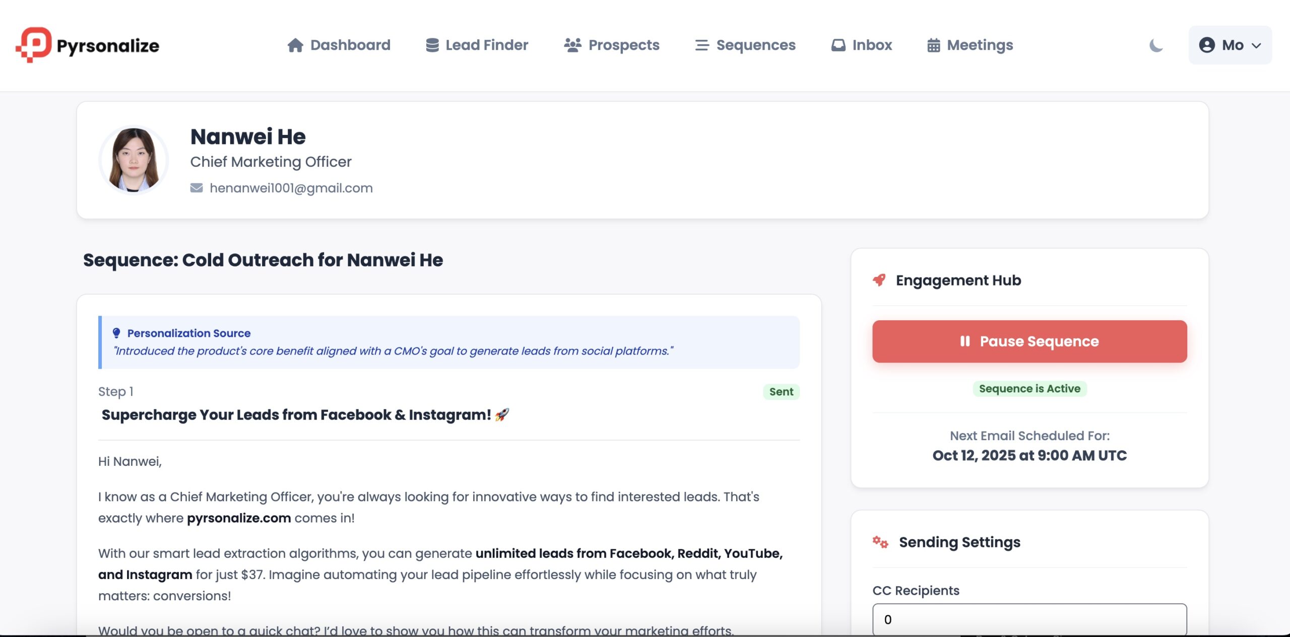 Next comes the magic. Pyrsonalize’s AI Sequences feature writes custom email templates for each prospect based on their background and interests. You don’t need to spend hours writing or testing subject lines — the AI handles it for you, while keeping the tone natural and relevant.
