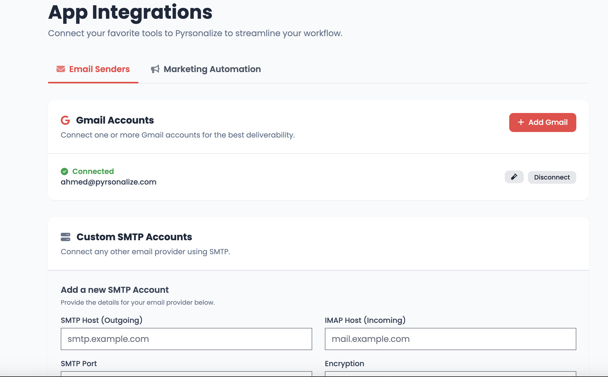 You can even connect multiple mailboxes and let Pyrsonalize rotate between them to improve email health and avoid spam filters.